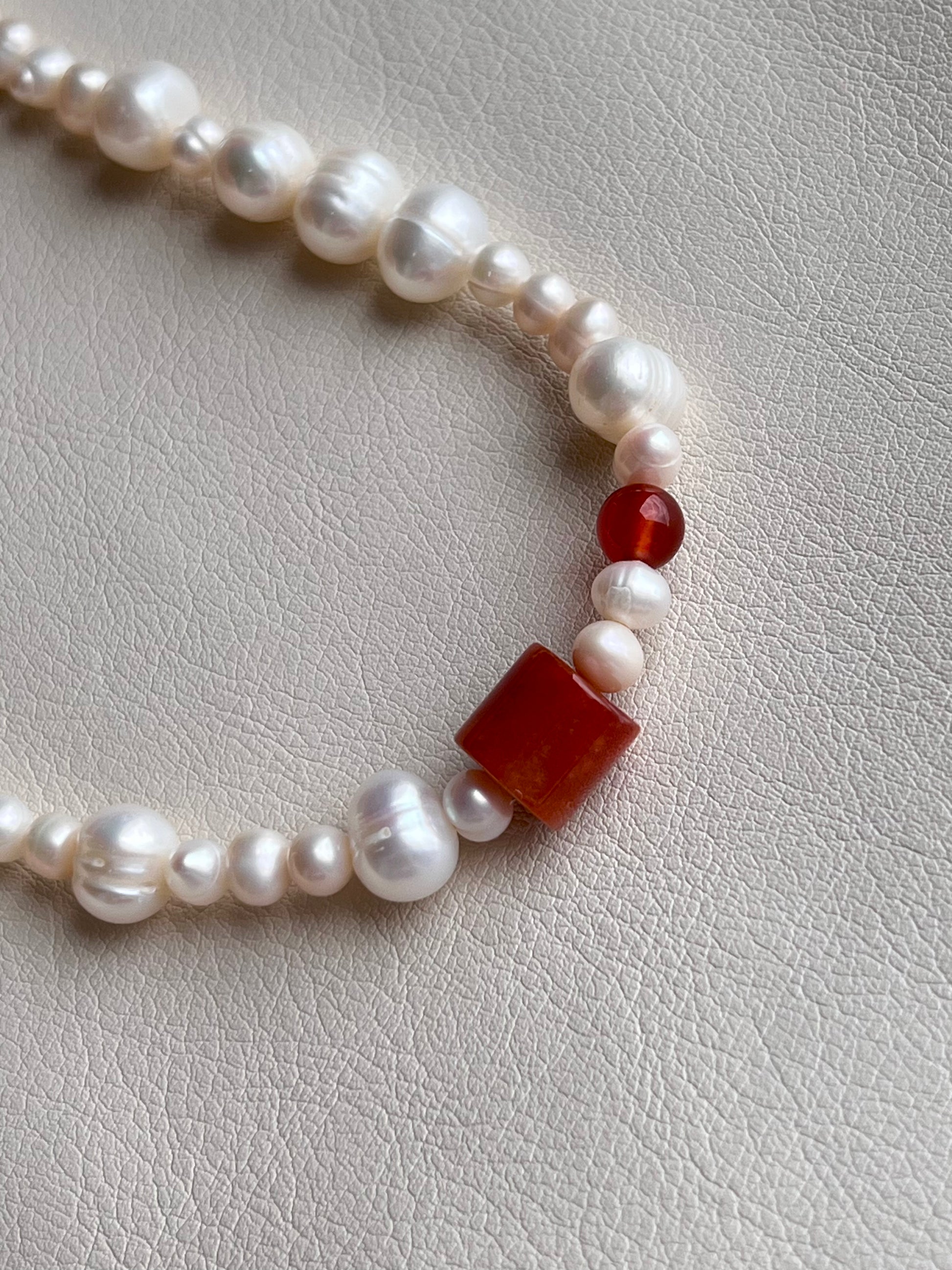 Classic Pearl Necklace – Red Fired Jade